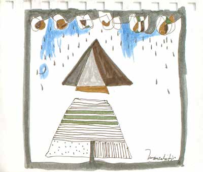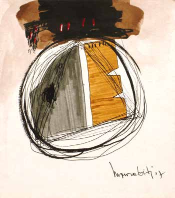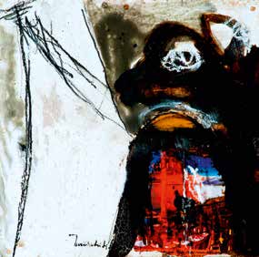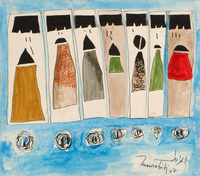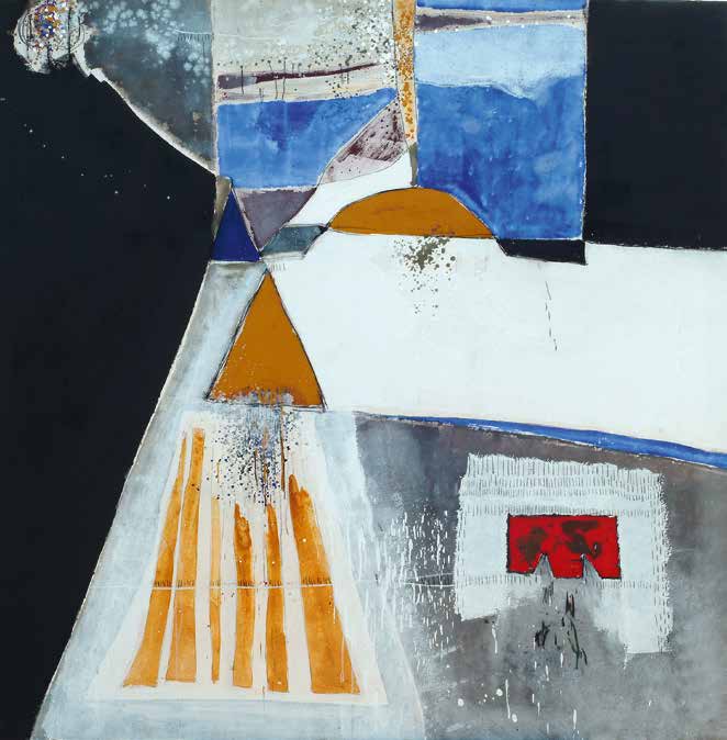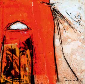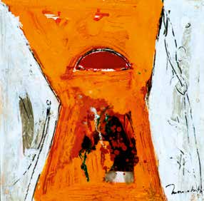 Aujourd’hui nous ne sommes plus que dans des flux qui rapprochent en un instant les distances ; la route terrestre et la route de la mer, relevaient du parcours initiatique. C’était un parcours de la vérité qui rappelle le parcours de notre peintre. Les maqamat-s, ces stations spirituelles que le peintre nous incite à faire d’exposition en exposition, nous invitent à une lecture spirituelle avant tout d’ordre universel. La quête de soi – pas seulement religieuse, surtout pas enfermé dans un culte – est une soif de transcendance que nous retrouvons dans l’art. Tous les voyages que MOURABITI a accompli, l’ont fait revenir au point de départ dans un lien inéluctable à la Kaaba, tombeau des tombeaux. Toutes ses pérégrinations lui ont permis la construction de son identité par une confrontation constante aux lieux et aux êtres, parce qu’il possédait son propre viatique , celui à reconstruire sans cesse.