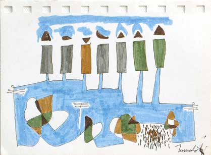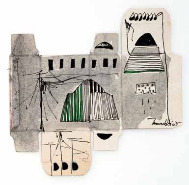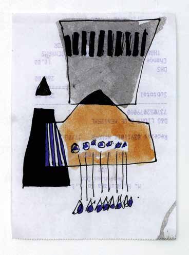 Il ne s’agit pas de véritables cartes à la manière d’un Alechinsky bravant un nouvel espace, mais de flyers, des coupures de journaux ou de magazines, à partir desquels ont été repérés des places et des boulevards rattachés à des zones de couleurs. Des traits biffent ou au contraire relient ces espaces cartographiés. Des cartes qui se chevauchent, hâtivement marouflées sur la toile et qui parlent de voyages, d’allers et retours, d’échanges rapides, comme des coups de pinceau, jetés brusquement sur un support. Des cartes, petits morceaux du monde proche, défilent à côté de Marrakech, Paris, Londres, Dubaï ou Sao Paulo, en lambeaux posés comme des éclats de mémoire, comme des objets, quelques papiers découpés qui continuaient à dire, ce qui a été, fugacement. Enfermés sur des supports carrés de petite taille. Comme des haltes. Arrêts en des lieux précis, mais toujours en relations les uns aux autres. Carnets parisiens. La série évoquait un nouveau départ, dominé par le doute. Une voie pourtant se dessinait, nouvelle. D’un dessin à l’autre, les indications fugaces nous donnaient à saisir ces éclats de pensée, dans des espaces neufs. Par les dessins, le peintre nous prépare à la plongée dans l’océan d’une toile plus grande, où il viendra poursuivre sa pérégrination dans une pensée éminemment picturale.