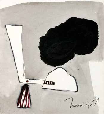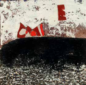 La masse noire – ici le tombeau – est une sorte de fil spirituel, nous reliant dans le temps au grand saint : Edmond AMRAN EL MALEH,se demandait ainsi si ce n’était pour le peintre, l’énième tentative d’«édifier un tombeau idéal, virtuel, dont toutes ses toiles constitu[eraient] la tentative recommencée » ? N’est-ce pas là une tentative d’atteindre, de se rapprocher, de l’édifice le plus sacré de l’islam : celui vers lesquels tous convergent au moment des prières quotidiennes et pour le pèlerinage d’une vie, celui autour duquel se font en conséquence les circumbulations les plus hautes, ce centre spirituel qu’incarne la Kaaba pour tout Musulman ? Ne doit pas y reconnaître en effet un appel pour atteindre, entrer en communication avec le cœur de l’Islam, pour intercéder directement auprès du Divin ? Cette tentation émergeait subrepticement des toiles premières, désormais, elle est là.