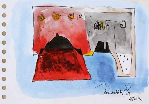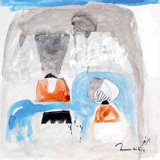 Au contraire, dans les toiles, la grâce – celle du Divin – est très présente, légère, évanescente. Le peintre tente de la saisir, de la capter. Il la recherche dans un monde qui, brutalement change de visage. Marrakech ces dernières années s’est dépouillée de sa beauté. Des immeubles ont remplacé les jardins, les spéculateurs se sont acharnés sur la ville, partout, sur les interstices, sur ses limites sans cesses repoussées, elle étouffe. Elle implose. On l’habille de décorums impuissants à cacher la catastrophe. MOURABITI a navigué des années durant entre Casa et Marrakech, puis une fois installé dans la ville rouge, il a éprouvé le besoin de s’en éloigner, de construire un ailleurs, de lui résister. De partir encore.