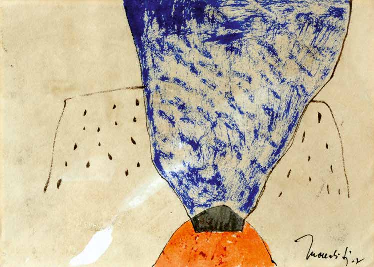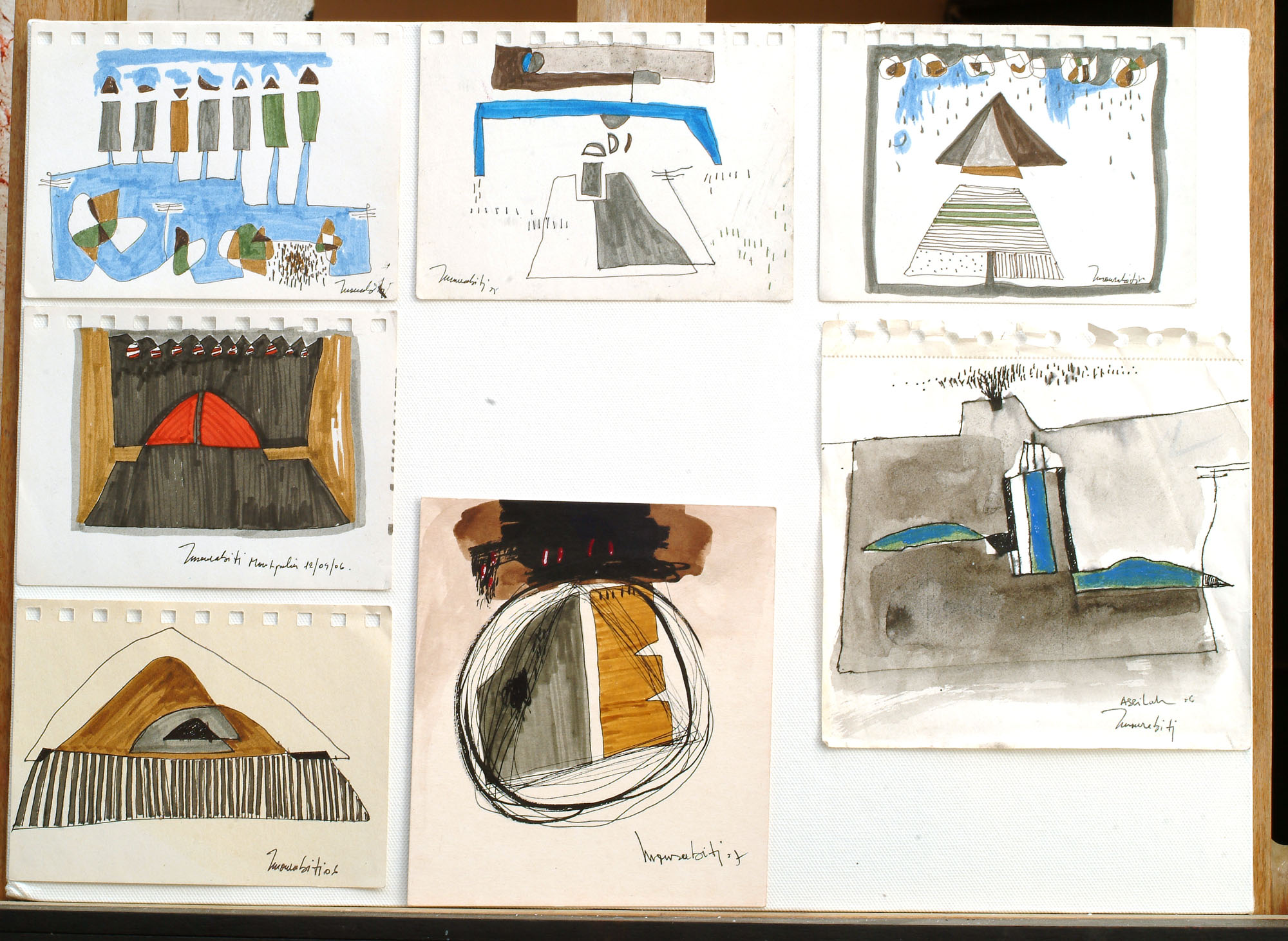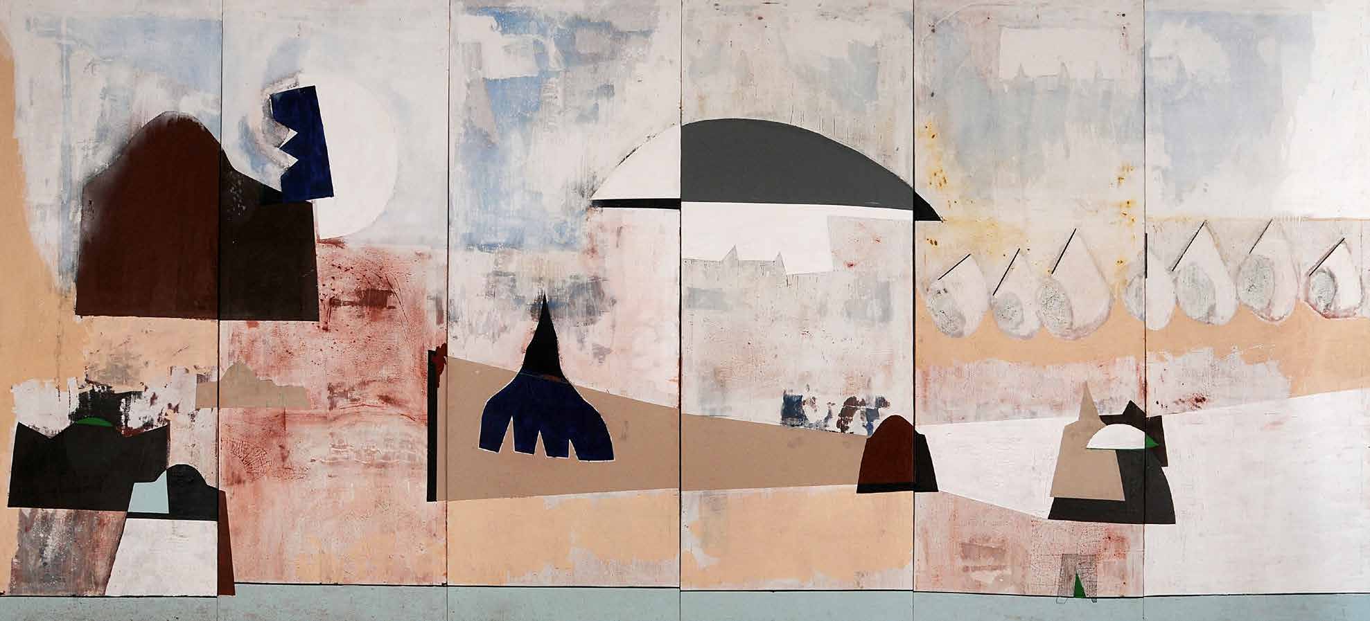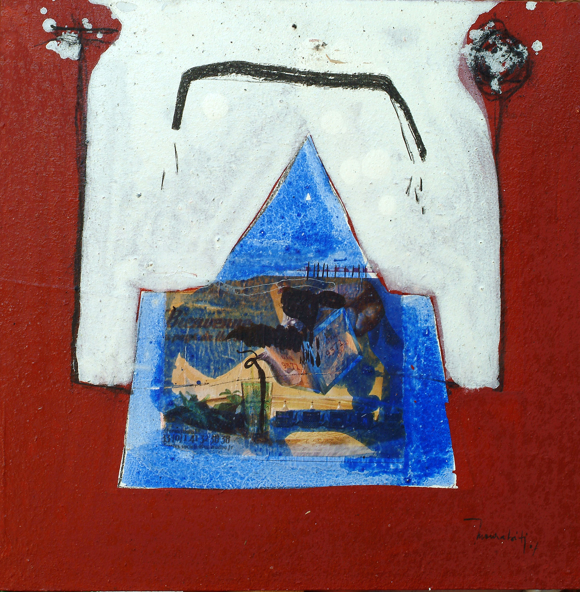 Mais bien auparavant, Mourabiti était attentif à l’enviro-nnement. A Casablanca, où il vécut une partie de sa jeunesse et à Marrakech où il est retourné au début de sa carrière artistique, le paysage urbain l’interpellait avec force. Outre l’architecture, la texture des murs, l’ambiance des quartiers… son œil sensible balayait les terrasses des maisons et emmagasinait les images des paraboles plantées telles des créatures venues d’une autre planète. Ces silhouettes ont commencé par hanter ses toiles avant de devenir un véritable module plastique.