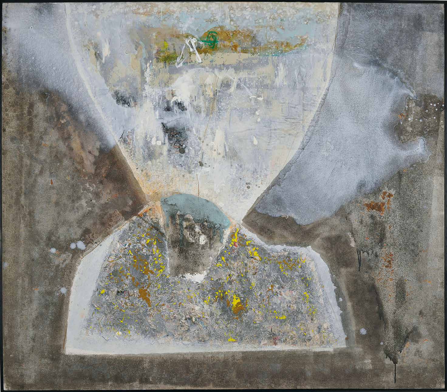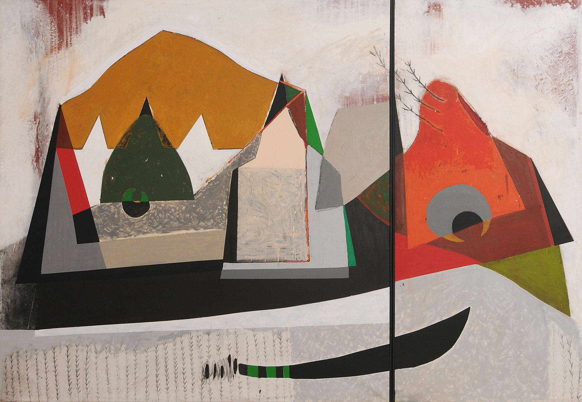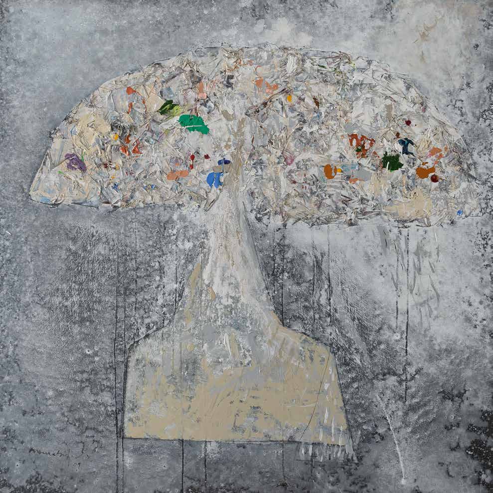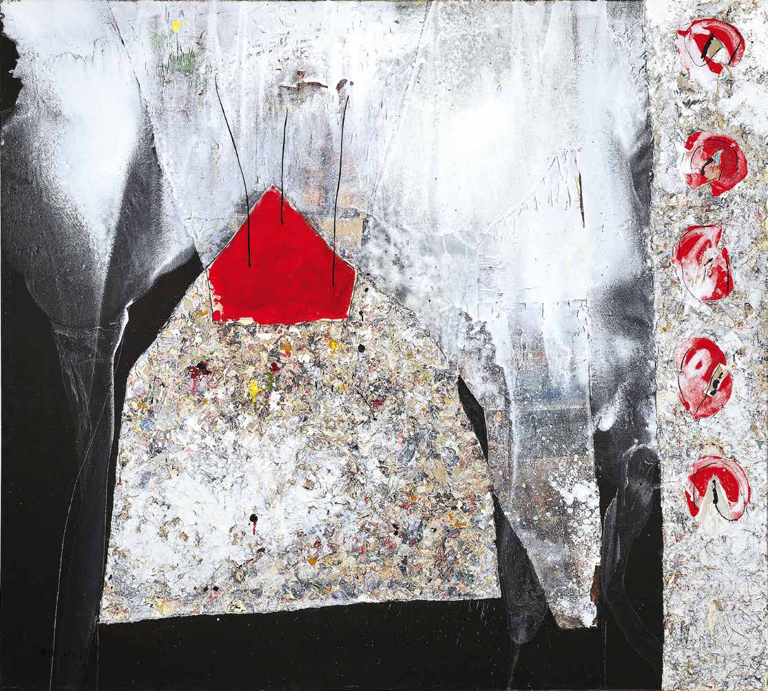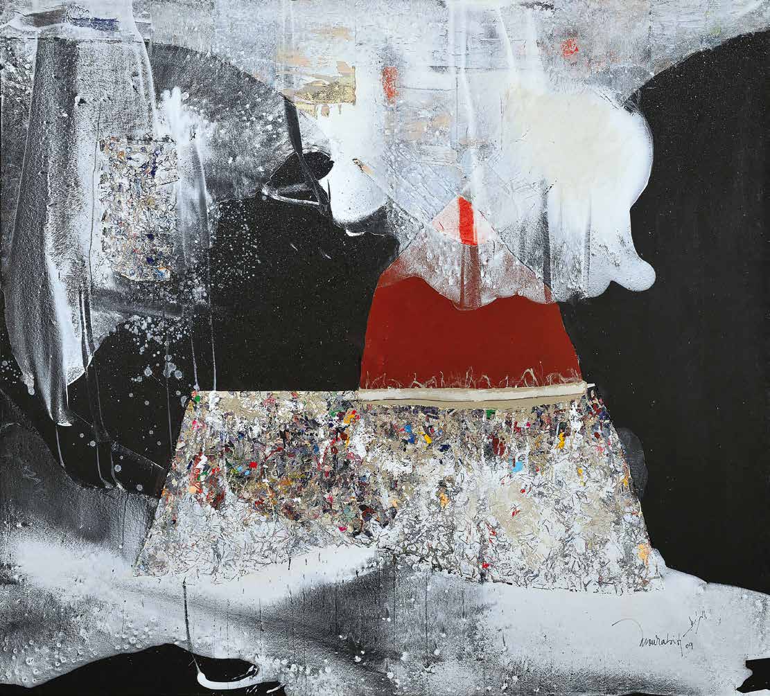 Encore une fois je ne voudrais pas me redire en affirmant la difficulté rédhibitoire ou presque de parler peinture. L’intensité, le poids de cette saturation, cette présence des toiles partout où se pose le regard, nourrit un désir affirmé: celui de garder le silence, un mot en trop gâcherait notre plaisir, sa lente maturation. Faut-il maintenant se justifier, en quelque manière pour ne pas encourir le reproche de céder à l’excès, à l’emportement du moment, à un regard bien subjectif, en raison de mes relations d’amitié avec Mourabiti.