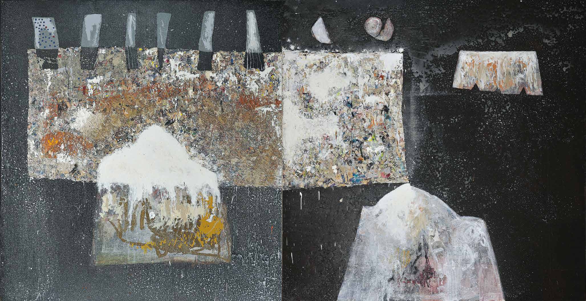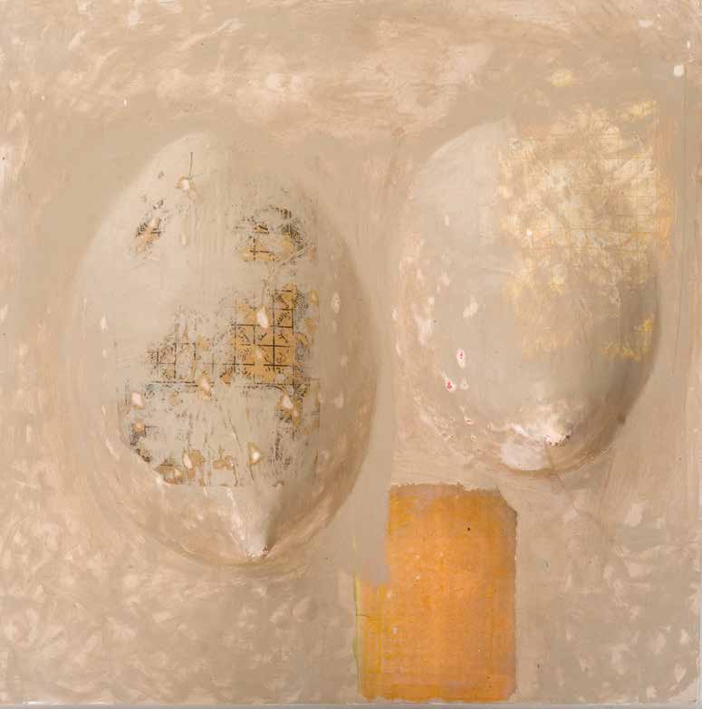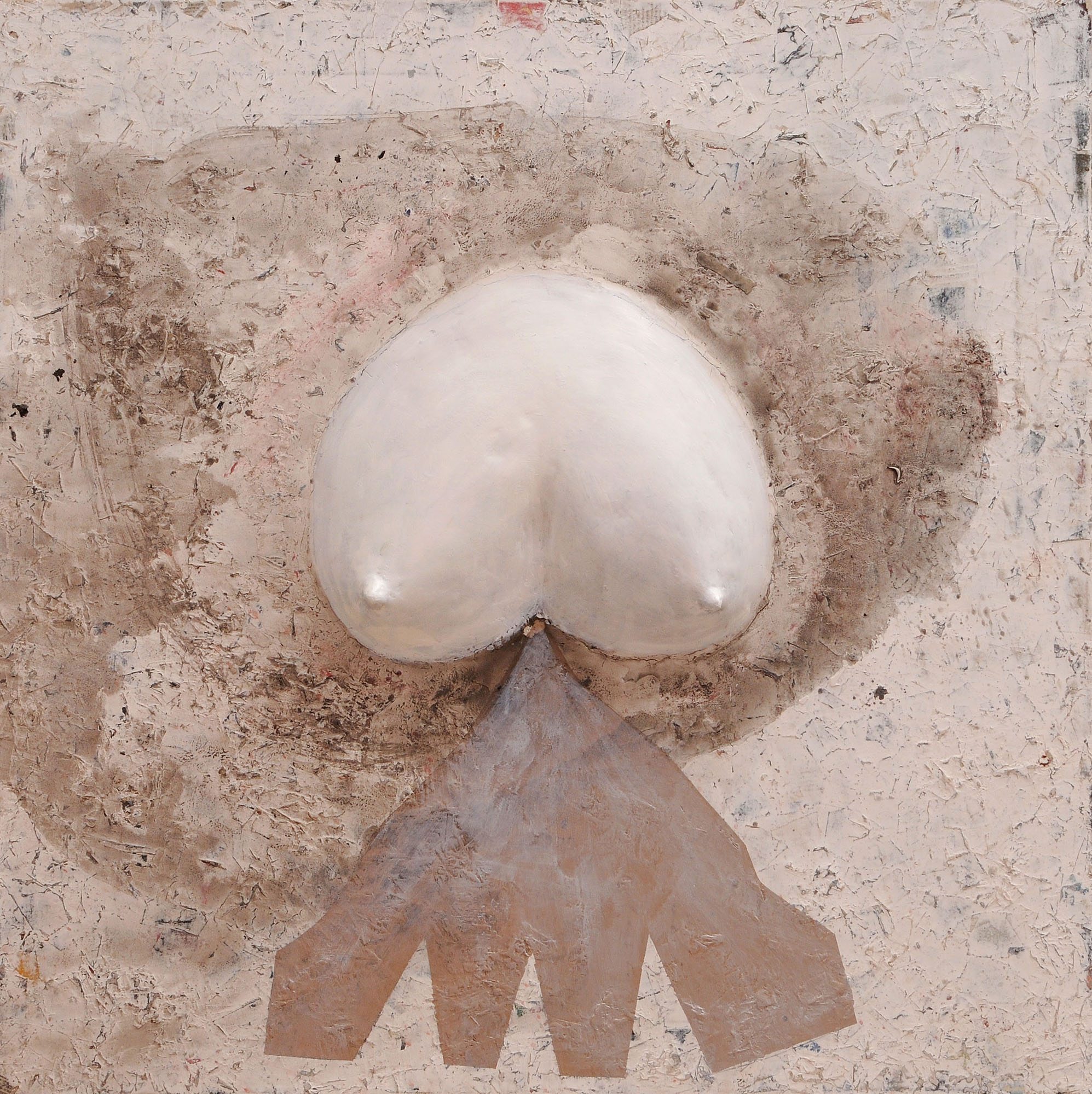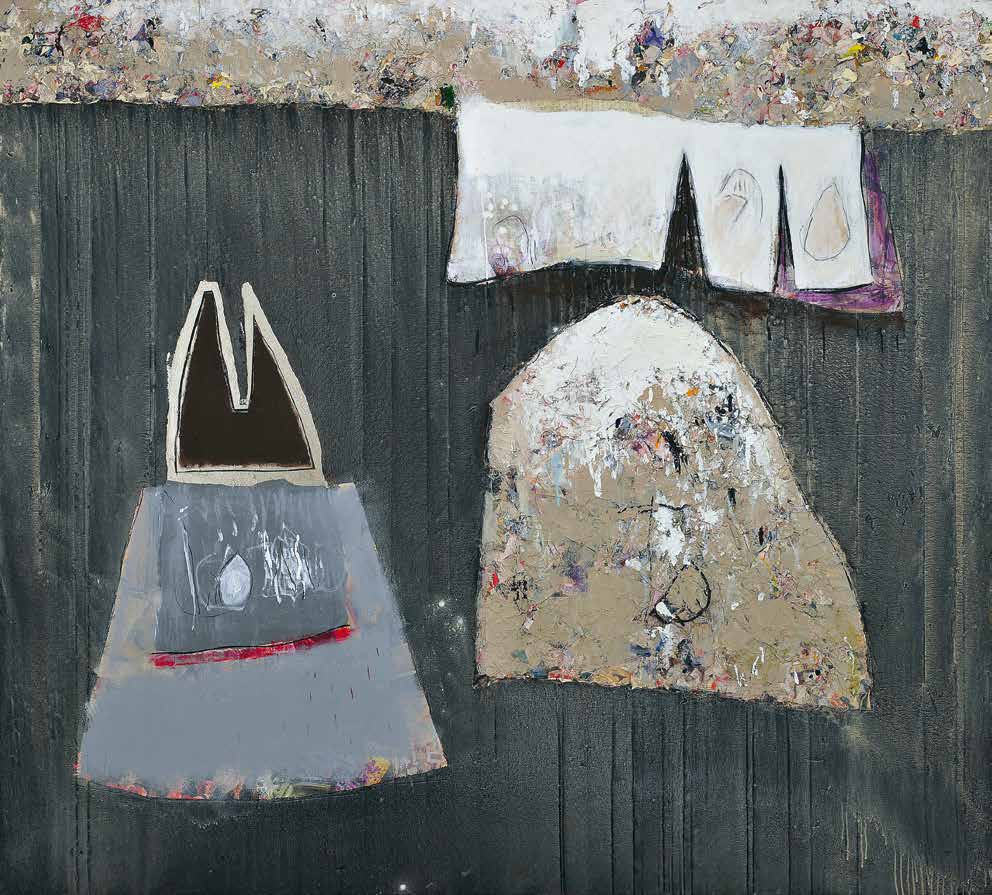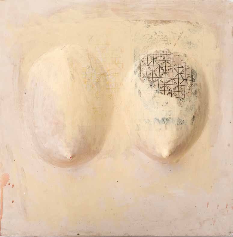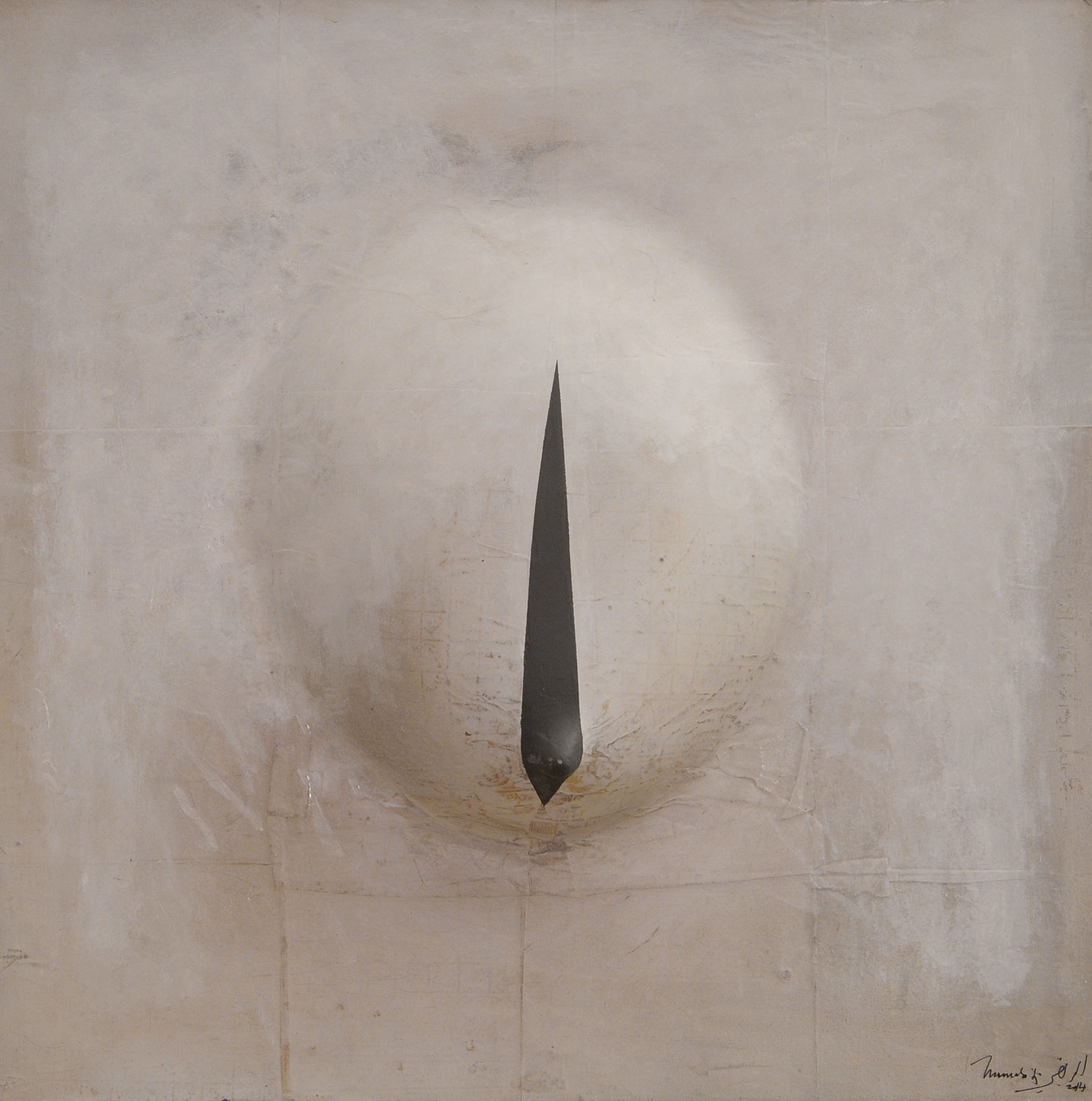 On peut dire que par rapport aux travaux, réalisés autour des années 2006 et qui furent l’objet d’une exposition, un grand pas décisif a été franchi. Non pas que ces œuvres fussent mauvaises. Loin de là. Elles traduisent plutôt une période de recherches dont l’aboutissement est ce qui se donne à voir maintenant. Dans les grandes toiles que j’ai pu voir, la vision de Mourabiti s’est affirmé dans le champ qu’elle a déterminé. Une patiente et diverse exploration des valeurs esthétiques et poétiques de la matière. La transparence, la blancheur comme tonalité dominante, symbolique de pureté, d’une certaine ascèse et pourquoi ne pas penser à une lointaine imprégnation du soufisme (le blanc de la laine). Mais pour autant les formes qui lui sont chères, constantes comme, par exemple, les cercles, les sphères ou ce qui s’en rapproche n’auront pas disparu et s’intègrent parfaitement dans ces toiles présentes. Il m’est venu à l’esprit, et ce n’est pas une fantaisie gratuite, que les Jbilets sont entrés dans la peinture de Mourabiti d’une manière ou d’une autre. L’éventail des variations autour des formes arrondies des jbilets justifie cette entrée ; c’est encore la matière qui intervient comme mémoire, comme vécu du regard et du corps en sa totalité. Ce n’est là qu’une approche des récents travaux de Mourabiti ; il faut le tenir à l’œil, pour ainsi dire, et ne pas passer trop vite ou sans retour. Klee donnait deux conseils à qui voudrait voir de la peinture. Prendre une chaise et laisser l’œil suivre ça et là les chemins tracés par le peintre dans ses toiles. Chose faite ! J’attends avec impatience la consécration à venir au cours de cette exposition