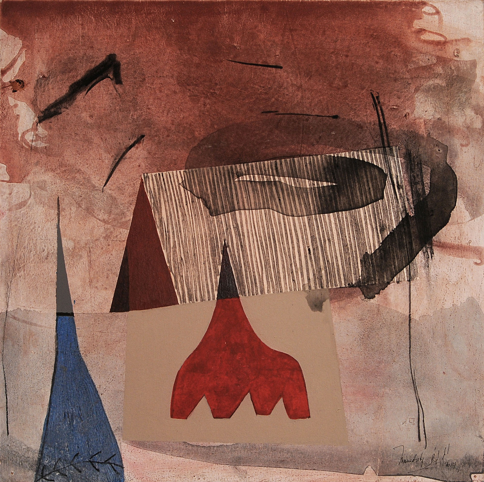 Dire cela c’est tout simplement oublier que la peinture, dans son authenticité s’impose d’elle-même et par elle-même dans l’absolu. Je crois pouvoir dire que Mourabiti s’est maintenant investi profondément et complètement dans la peinture et de ce désir, cette volonté, le stage à la Maison des Arts à Paris en est un des signes.
